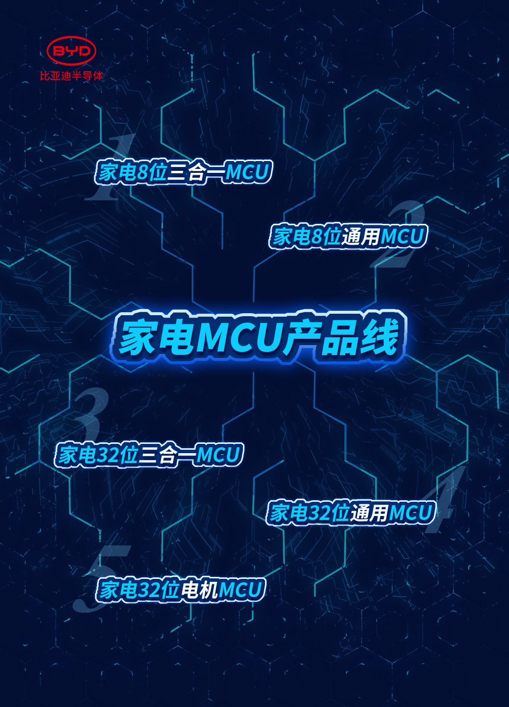 在半导体国产化大浪潮的背景下,作为已在MCU领域耕耘十八年的国内领先半导体企业,比亚迪半导体秉承初心,依托于深厚的技术积累,不断升级完善MCU产品体系。公司智能控制IC产品线,涵盖稳居市场占有率第一位的触控MCU,以及国内首款批量装车的车规级MCU等产品,覆盖车规级MCU、家电MCU、工业和锁控MCU等,已广泛应用于汽车、消费电子、家电、工业、能源和安防等多个领域。